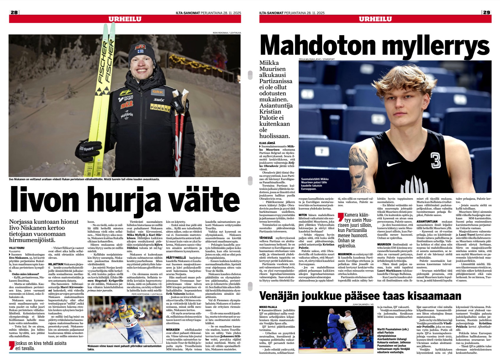 is.fi 27.11.2025: Judo: Pohjoismaiden vastarinta ei auttanut – Venäjä palaa kilpailuihin – Ilta-Sanomat