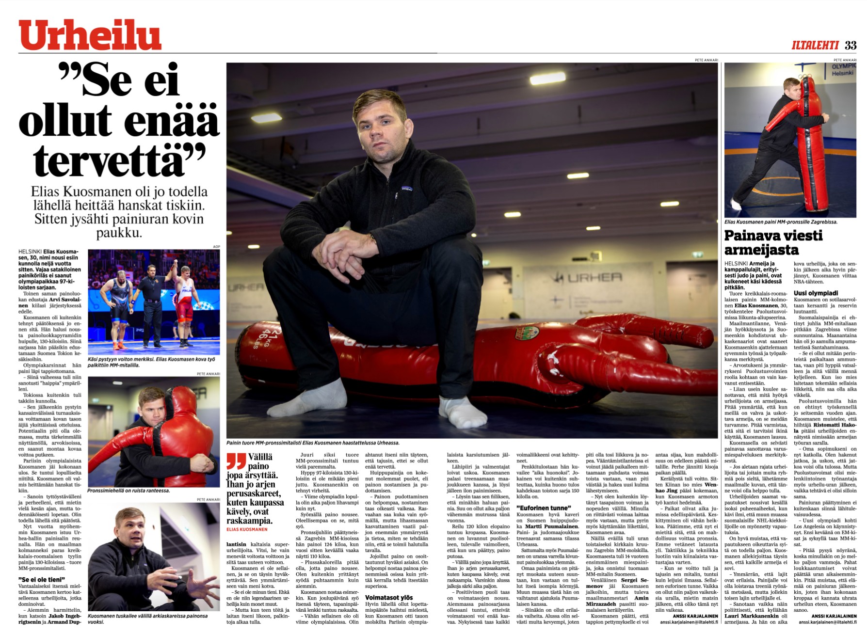 iltalehti.fi 27.9.2025: Elias Kuosmanen joutuu työnsä takia painamaan yli 120 kiloa – ”Se ei ollut enää tervettä”
