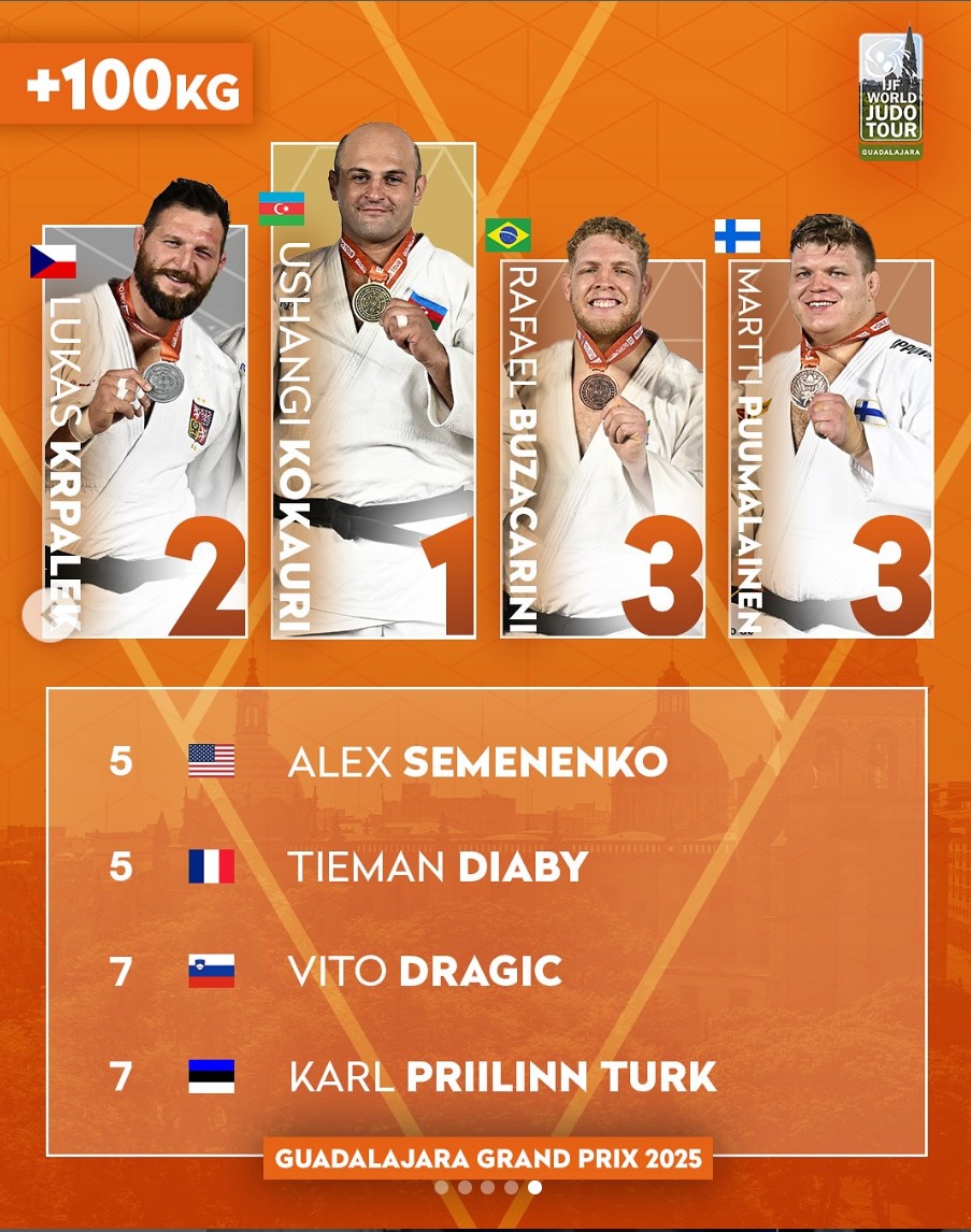 Guadalajara Grand Prix 2025, +100 kg, BUZACARINI Rafael, PUUMALAINEN Martti, KOKAURI Ushangi, KRPALEK Lukas (c) Kulumbegashvili Tamara / Guadalajara Grand Prix 2025 / IJF.org