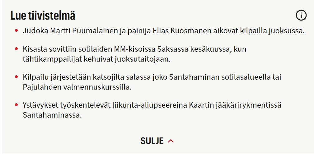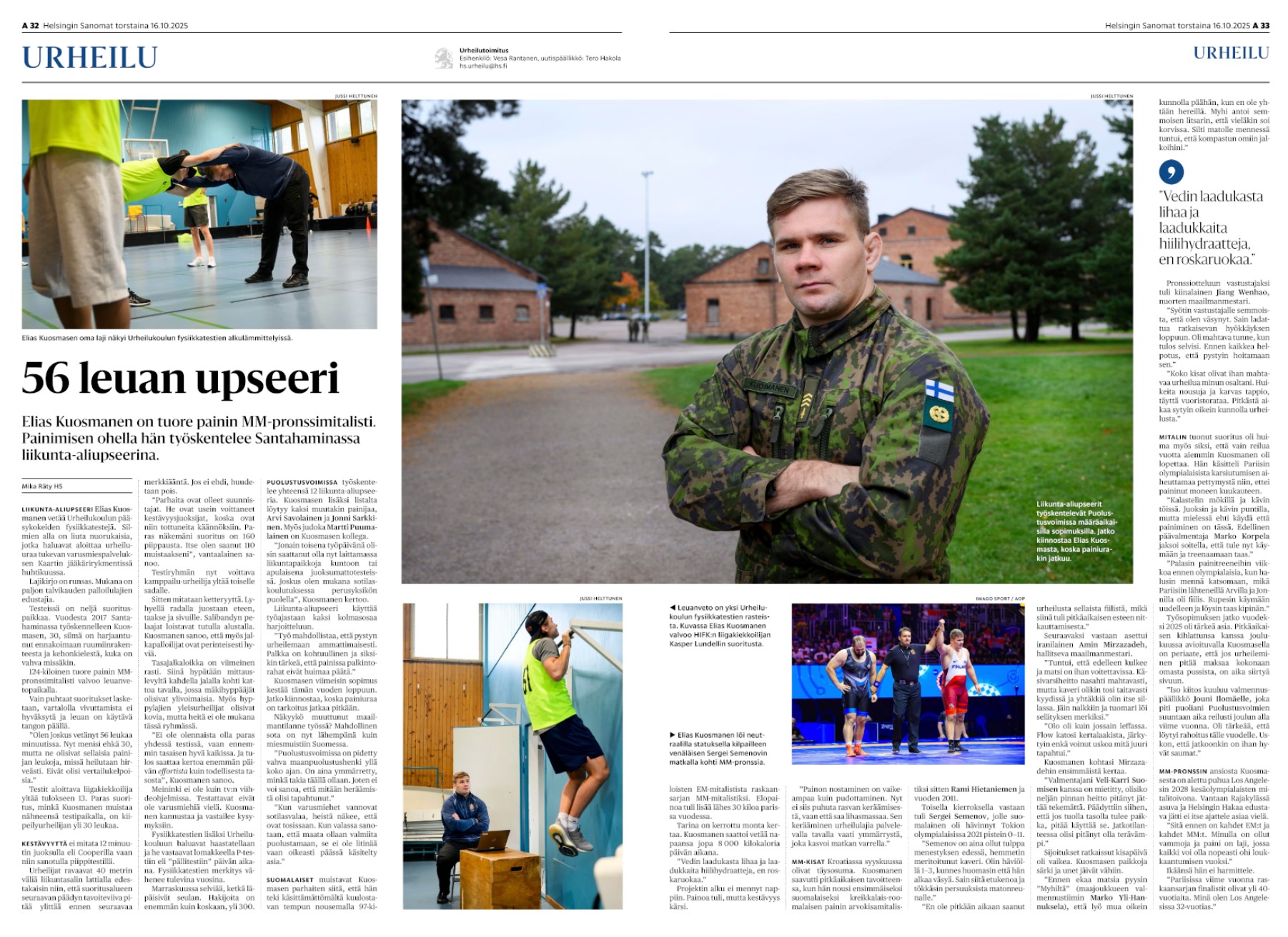 hs.fi 16.10.2025: Elias Kuosmanen on tuore painin MM-mitalisti ja työskentelee Puolustusvoimissa | HS.fi