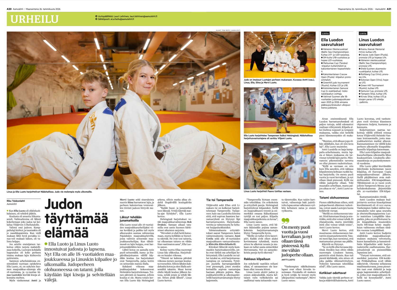 hs.fi 30.1.2026: Emma Krapu valitsi pianon sijaan tatamin | HS.fi