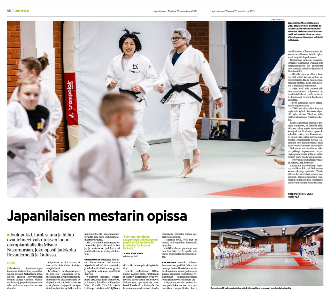 lapinkansa.fi 26.1.2026: Lumi, sauna ja hiihto vaikuttivat olympiamitalistin – japanilainen Misato Nakamura jakoi kokemustaan pohjoisen judokoille | Lapin Kansa